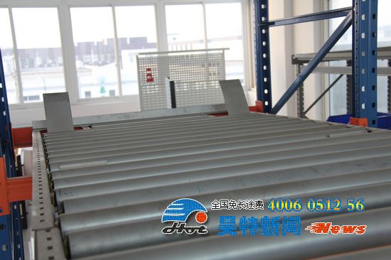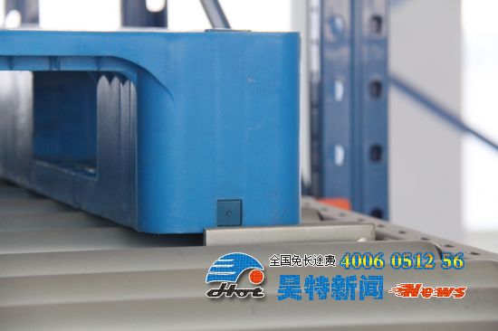 2.因為重力式貨架有3°的斜坡,所以重力式貨架上的托盤會隨著貨架的方向向下滑動。
