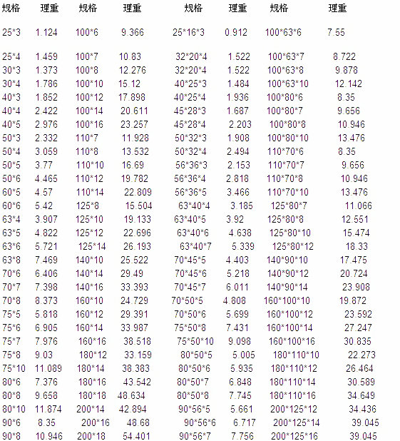 等邊角鋼型號(hào)規(guī)格表 不等邊角鋼尺寸規(guī)格表