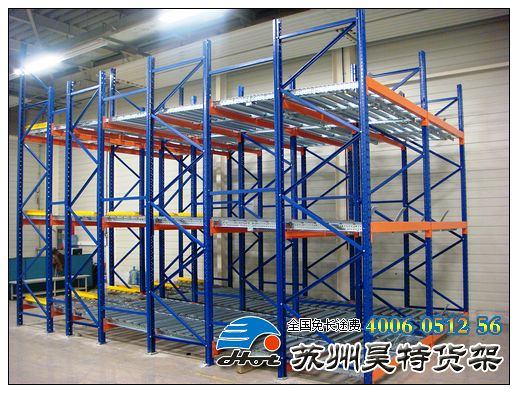 排之間沒有作業(yè)通道,大大提高了倉庫面積利用率。但使用時,最好同一排、同一層上的貨物,應為相同的貨物或一次同時入庫和出庫的貨物。此外,當通道較長時,在導軌上應設置制動滾道,以防止終端加速度太大。