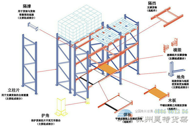 重型貨架由立柱、橫梁、橫撐、斜撐;橫梁采用特制的冷軋雙C型抱扣梁;該構(gòu)造具有簡單牢靠、重量輕、承載力強、造價低的特性;柱卡與立柱銜接時配有特殊設(shè)計平安銷,能夠確保橫梁在外力撞擊下不會零落; 兩橫梁之間采用特制增強桿銜接,以保證橫梁在受力時里外彎曲。
