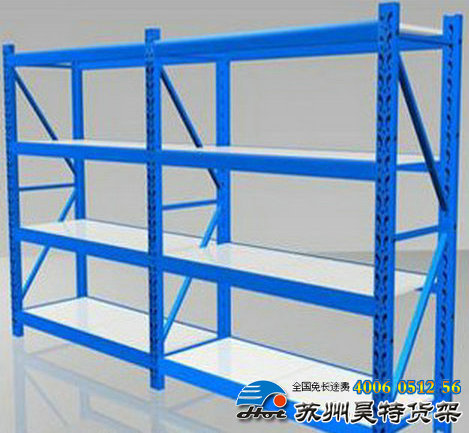 (2)南方貨架,下圖就是南方貨架的代表,江浙滬的普遍生產(chǎn)的貨架就是南方貨架的代表,南方貨架一般采用的結(jié)構(gòu)都是可以拆卸的,所有的立柱片都是用螺絲固定的,拆卸較為方便。南方貨架,貨架的材料一般使用帶鋼,這樣剛才通過滾扎成型,表面酸洗,磷化,噴粉,烘烤,晾干程序做出來的貨架堅(jiān)固耐用,蘇州貨架是典型的代表,因此,南方貨架價(jià)格要高一些。