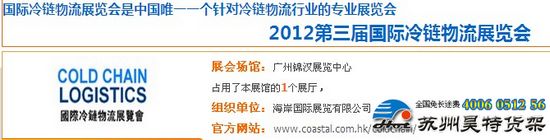國際冷鏈物流展覽會是南中國唯一一個針對冷鏈物流行業(yè)的專業(yè)展覽會。國際冷鏈物流展覽會為食品生產(chǎn)商、食品分銷商、食品加工、全球零售商、快餐連鎖集團、食品用具供應(yīng)商、食品服務(wù)供應(yīng)商、食品雜貨商、酒樓、酒店、藥品冷貯與運輸商以及第三方物流公司、協(xié)會、政府部門等提供一個理想貿(mào)易、交流平臺。同時,也為冷庫技術(shù)、冷藏車輛運輸、空運、海運、包裝設(shè)備、搬運設(shè)備、物流設(shè)備、冷鏈配送中心提供良好的商機。