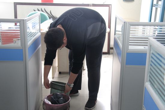 本公司消息:一個(gè)人如果連身邊的小事都不關(guān)心的話,何談對(duì)團(tuán)隊(duì)的負(fù)責(zé),對(duì)公司的負(fù)責(zé)呢?今天早上剛到公司,我無意間看到了一個(gè)寬厚的背影(偷拍滴), 彎著腰在整理垃圾,看著那厚厚的結(jié)實(shí)的側(cè)面我已經(jīng)知道他是誰了。趙禎,營銷部進(jìn)來不久的(小胖,大家取的愛稱)家人,平時(shí)不怎么愛講話,但絕對(duì)是個(gè)熱心的人,今天的舉動(dòng)更是,讓我感覺到這個(gè)小伙子有擔(dān)當(dāng)。