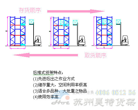 因此,后推式貨架又被稱(chēng)作壓入式貨架,在企業(yè)的倉(cāng)庫(kù)的中被廣泛應(yīng)用著,但因?yàn)槠浣Y(jié)構(gòu)特殊性,目前的的使用還比較局限。