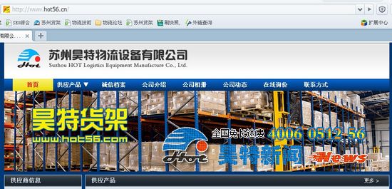 本公司消息:2012年8月24日,近日,為了方便廣大用戶方便購買和體驗公司的倉儲貨架等相關產品,蘇州貨架公司昊特貨架廠的另一個直銷類型的網站正式上線啦,此網站網址為www.hot56.cn。本公司具有阿里巴巴誠信通五年資質,廣大客戶可放心選購下單。