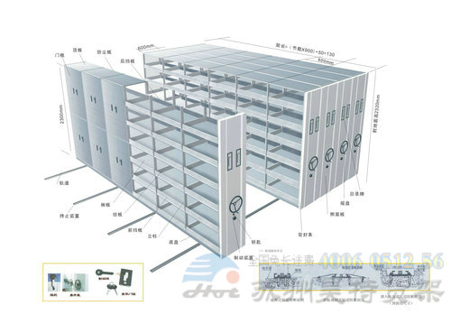 密集柜主要由軌道、底座、立柱(板式)、擱板等設(shè)計(jì)生產(chǎn)而成,其主要結(jié)構(gòu)有以下幾點(diǎn):