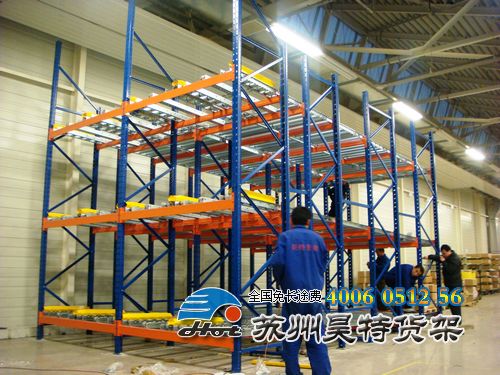 (1)重力式貨架:相對普通托盤貨架而言不需要操作通道,故增加60%的空間利用率;托盤操作遵循先進先出的原則;自動儲存回轉(zhuǎn);儲存和揀選兩個動作的分開大大提高輸出量,由于是自重力使貨物滑動,而且沒有操作通道,所以減少了運輸路線和叉車的數(shù)量。但使用時,最好同一排、同一層上的貨物,應(yīng)為相同的貨物或一次同時入庫和出庫的貨物。層高可調(diào),配以各種型號叉車或堆垛機,能實現(xiàn)各種托盤的快捷存取,單元貨格最大承載可達(dá)5000kg,是各行各業(yè)最常用的存儲方式。