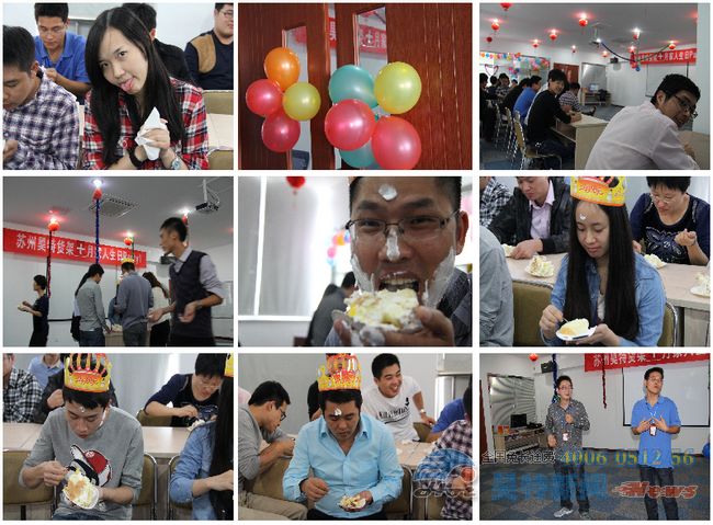 昊特貨架消息:2012年10月22日,上周日的蘇州貨架公司昊特貨架廠內(nèi),充滿歌聲和笑語。本月過生日的昊特家人一共有四位,他們是銷售部的王賢、熊偉,無錫辦事處的胡維,以及貨架公司總經(jīng)理黃高洪。在這樣一個(gè)特殊的日子里面,大家齊聚公司活動(dòng)室,為他們精心編排了一個(gè)別樣的生日party。在此,再次祝他們生日快樂!