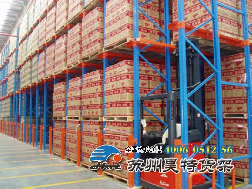 又俗稱橫梁式貨架,或稱貨位式貨架,通常為重型貨架,在國內(nèi)的各種倉儲貨架系統(tǒng)中最為常見。首先須進(jìn)行集裝單元化工作,即將貨物包裝及其重量等特性進(jìn)行組盤,確定托盤的類型、規(guī)格、尺寸,以及單托載重量和堆高(單托貨物重量一般在2000kg以內(nèi)),然后由此確定單元貨架的跨度、深度、層間距,根據(jù)倉庫屋架下沿的有效高度和叉車的最大叉高決定貨架的高度。單元貨架跨度一般在4m以內(nèi),深度在1.5m以內(nèi),低、高位倉庫貨架高度一般在12m以內(nèi),超高位倉庫貨架高度一般在30m以內(nèi)(此類倉庫基本均為自動化倉庫,貨架總高由若干段12m以內(nèi)立柱構(gòu)成)。此類倉庫中,低、高位倉庫大多用前移式電瓶叉車、平衡重電瓶叉車、三向叉車進(jìn)行存取作業(yè),貨架較矮時也可用電動堆高機(jī),超高位倉庫用堆垛機(jī)進(jìn)行存取作業(yè)。此種貨架系統(tǒng)空間利用率高,存取靈活方便,輔以計算機(jī)管理或控制,基本能達(dá)到現(xiàn)代化物流系統(tǒng)的要求。廣泛應(yīng)用于制造業(yè)、第三方物流和配送中心等領(lǐng)域,既適用于多品種小批量物品,又適用于少品種大批量物品。此類貨架在高位倉庫和超高位倉庫中應(yīng)用最多(自動化倉庫中貨架大多用此類貨架)。