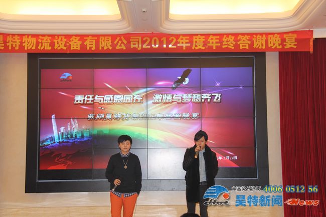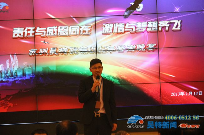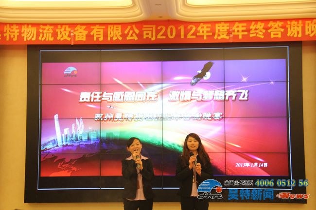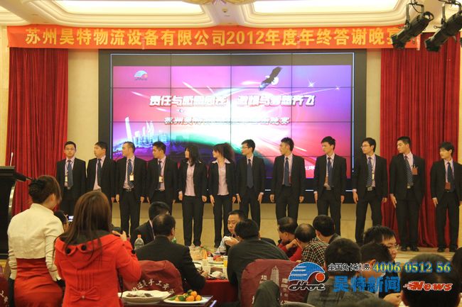 本公司消息:2013年1月16日,蘇州昊特貨架公司于14日晚在蘇州白金漢爵酒店舉辦了以“責(zé)任與感恩同在 激情與夢想齊飛”為主題的公司2012年度年終答謝晚宴。在公司各個(gè)部門共同努力之下,這次年終答謝晚宴取得了空前的成功!下面,獻(xiàn)上公司這次年會的精彩圖集