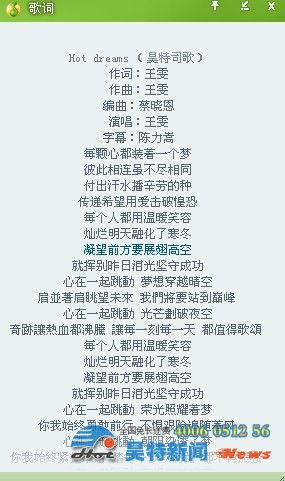 本公司消息:2013年1月18日,隨著蘇州貨架公司昊特貨架廠年會的順利落幕,在年會當(dāng)日,公司司歌《HOt Dreams》也同時發(fā)布。這次蘇州昊特貨架公司的司歌是由香港TVB超級巨聲第一季年度總冠軍,王雯作詞、演唱,并由著名譜曲作者蔡曉恩先生編曲。司歌歌曲節(jié)奏靈動婉轉(zhuǎn),歌詞高亢激昂,深受公司家人和廣大客戶朋友的喜愛,并被大家廣泛傳誦。