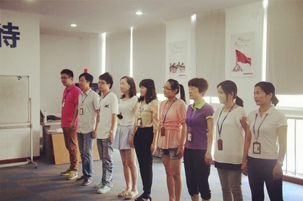 上圖為:昊特后勤部家人進行士氣展示