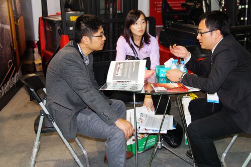 展會(huì)上黃總(左)與某行業(yè)負(fù)責(zé)人進(jìn)行交談