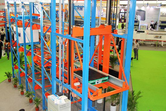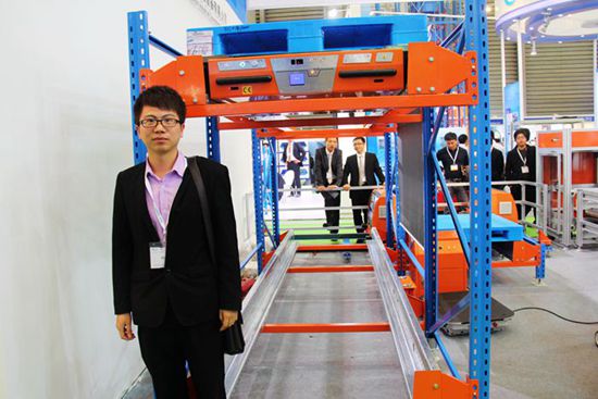 展會(huì)中現(xiàn)場(chǎng)穿梭車(chē)貨架的展示