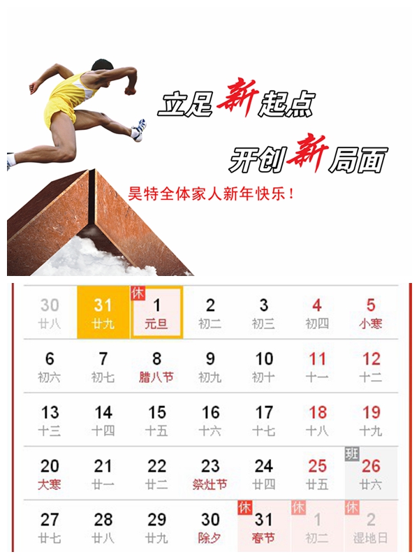 2014.1.1(元旦)休息,2014.1.2(星期四)正常上班;假期間如有產(chǎn)品服務(wù)咨詢,可撥打值班熱線:4006-0512-56;此外,昊特公司祝新老客戶朋友們,在新的一年發(fā)揚(yáng)龍馬精神,一馬當(dāng)先,馬到成功!