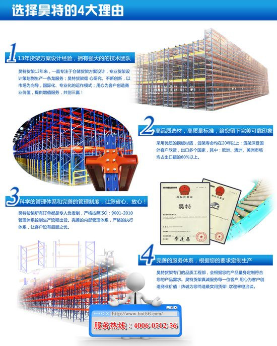 昊特蘇州貨架成立十三年來,深受國內(nèi)外客戶的支持和信任,已經(jīng)積累了幾千家國內(nèi)外知名客戶,重型貨架重力式貨架等遠(yuǎn)銷歐美等國家,而昊特蘇州貨架為什么13年來卻可以在蘇州倉儲貨架行業(yè)站穩(wěn)腳跟了,主要得力于以下幾點(diǎn):