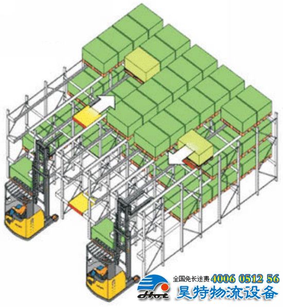 3、貫通式貨架適用存儲(chǔ)大批量、少品種貨物;
