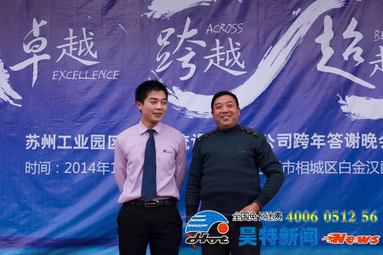 下圖為:13年年會榮獲飛躍獎,和他父親合影留念