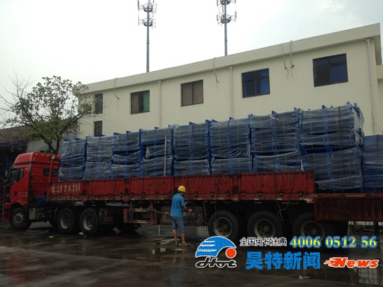 下圖為:昊特工程部家人在雨中卸鋼制托盤