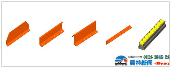 流利條滾輪的承載力為6kg/只,當(dāng)貨物較重時,可以在一個滾道安裝3-4根流利條。通常在深度方向上每隔0.6m安裝一根支撐梁以增加流利條的剛度。當(dāng)滾道較長時,可用分隔板將滾道隔開。取貨端需安裝制動片使貨物減速,降低沖擊。