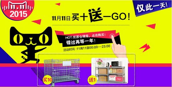 去年雙十一前,昊特蘇州貨架天貓旗艦店剛剛上線,店鋪發(fā)展并不是很成熟,所以并沒有搭上雙十一的順風(fēng)車,經(jīng)過一年的蟄伏和發(fā)展,昊特天貓旗艦店日趨成熟,倉儲(chǔ)籠、中型貨架每天都有穩(wěn)定的成交量和客戶購買回頭率,為了感謝一年來,客戶對昊特旗艦店的支持和厚愛,昊特蘇州貨架天貓旗艦店倉儲(chǔ)籠買十送一,凡在雙十一當(dāng)天00:00-23:00之間購買倉儲(chǔ)籠,數(shù)量超過十個(gè)以上,即可參與我們的活動(dòng),而23:00以后下單者,則不享受買十送一的剁手價(jià)。