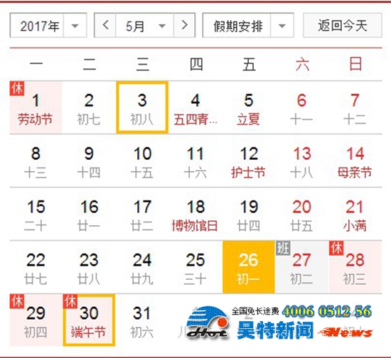1、放假時(shí)間:2017年5月28號(hào)(周日)-2017年5月30號(hào)(周二),其中27號(hào)周六正常上班;