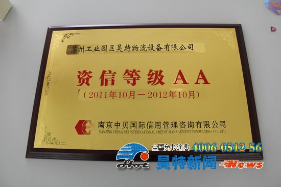 此次獲得AA資信等級證書,無疑是對昊特物流設(shè)備有限公司經(jīng)營成果、發(fā)展前景以及企業(yè)信用的客觀贊譽(yù)和肯定。