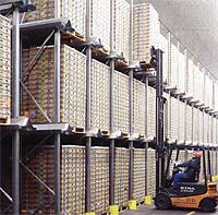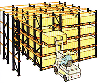 其特點是:倉庫利用率可達50%,適合儲存大批量、少品種貨物,但可選擇性差,先進先出不好,托盤質(zhì)量、規(guī)格都要求較高,適合對先進先出要求不高的倉庫設(shè)計使用