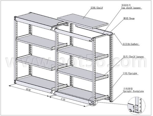 無(wú)螺栓貨架主要部件層板為冷板板金而成,可按50mm步距自由上下調(diào)整,作為中量型貨架,為便于操作人員存取貨物,貨架總高度通常不超過(guò)2米,如果使用登高設(shè)備,貨架高度最多可以達(dá)到3米。