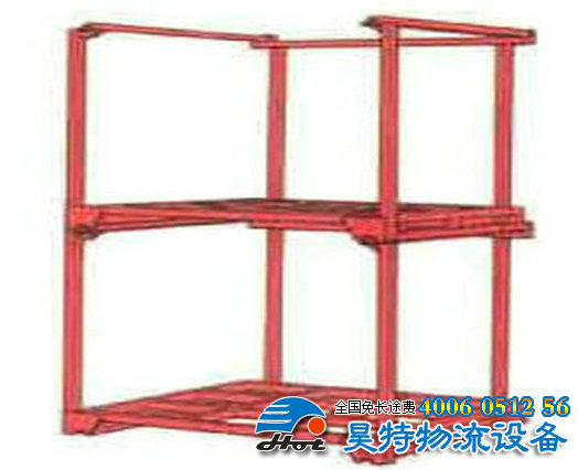 柱式平托盤分為固定式和可卸式兩種,其基本結(jié)構(gòu)是托盤的4個角有鋼制立柱,柱子上端可用橫梁連結(jié),形成框架型。
